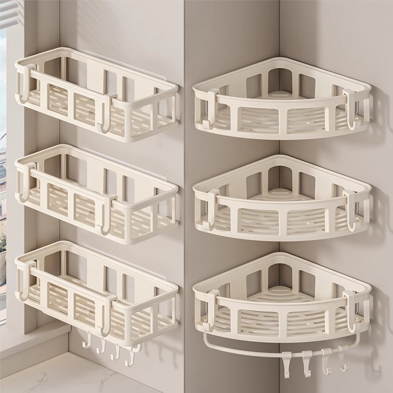 バスルーム用穴あけ不要の三角形収納ラック、バスルーム収納ラック、トイレ壁掛けコーナー収納ラック