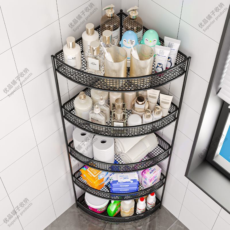 中空メッシュバスケット通気性と通気性のあるバスルーム収納ラックコーナーラックフロアトイレトイレバスルーム三角コーナーラック