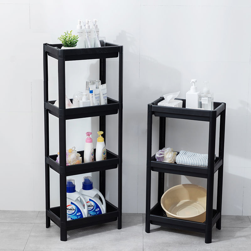 浴室の棚の浴室のトイレは床に落ちてトイレの風呂の間のプラスチックの収納棚のトイレの洗面器の三脚です。