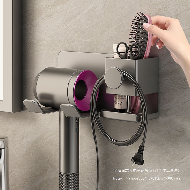 ヘアドライヤー収納ラックグレーパンチフリーバスルーム収納ヘアドライヤーラックヘアドライヤーブラケットバスルーム棚