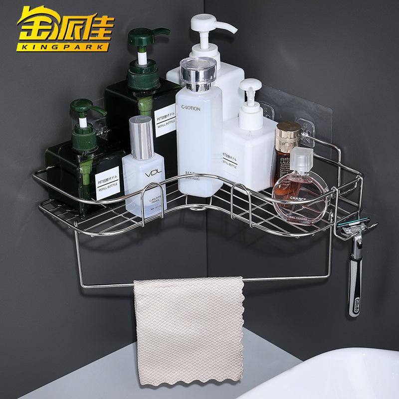家庭用コーナーラックステンレス洗面台タオル収納ラック穴なし壁桃心角収納ラック