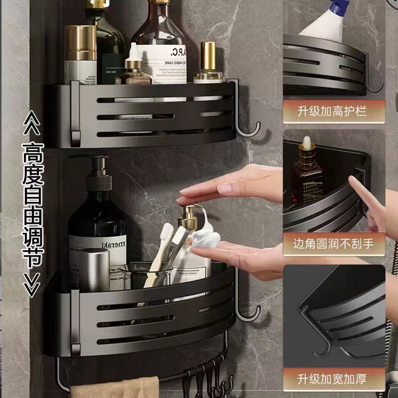 銃灰宇宙アルミ浴室三角バスケット棚穴なしトイレ壁掛けトイレ収納棚