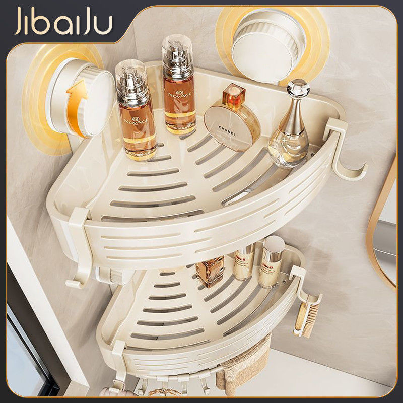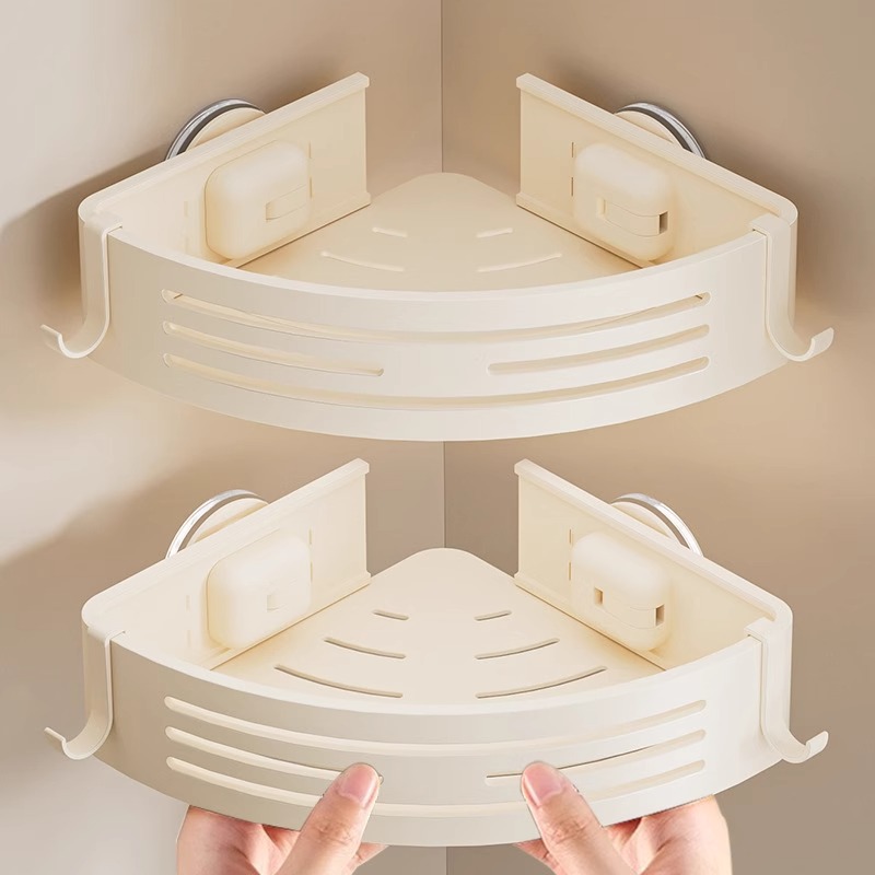 強力吸盤三角バスケット浴室四方置きバスケット水切りコーナーラックトイレプラスチックラック収納ラック