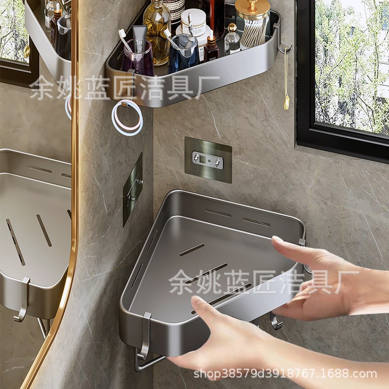浴室三角形収納棚、トイレコーナーラック、アルミ合金製壁掛け式、キッチンと浴室両用、穴あけ不要の棚