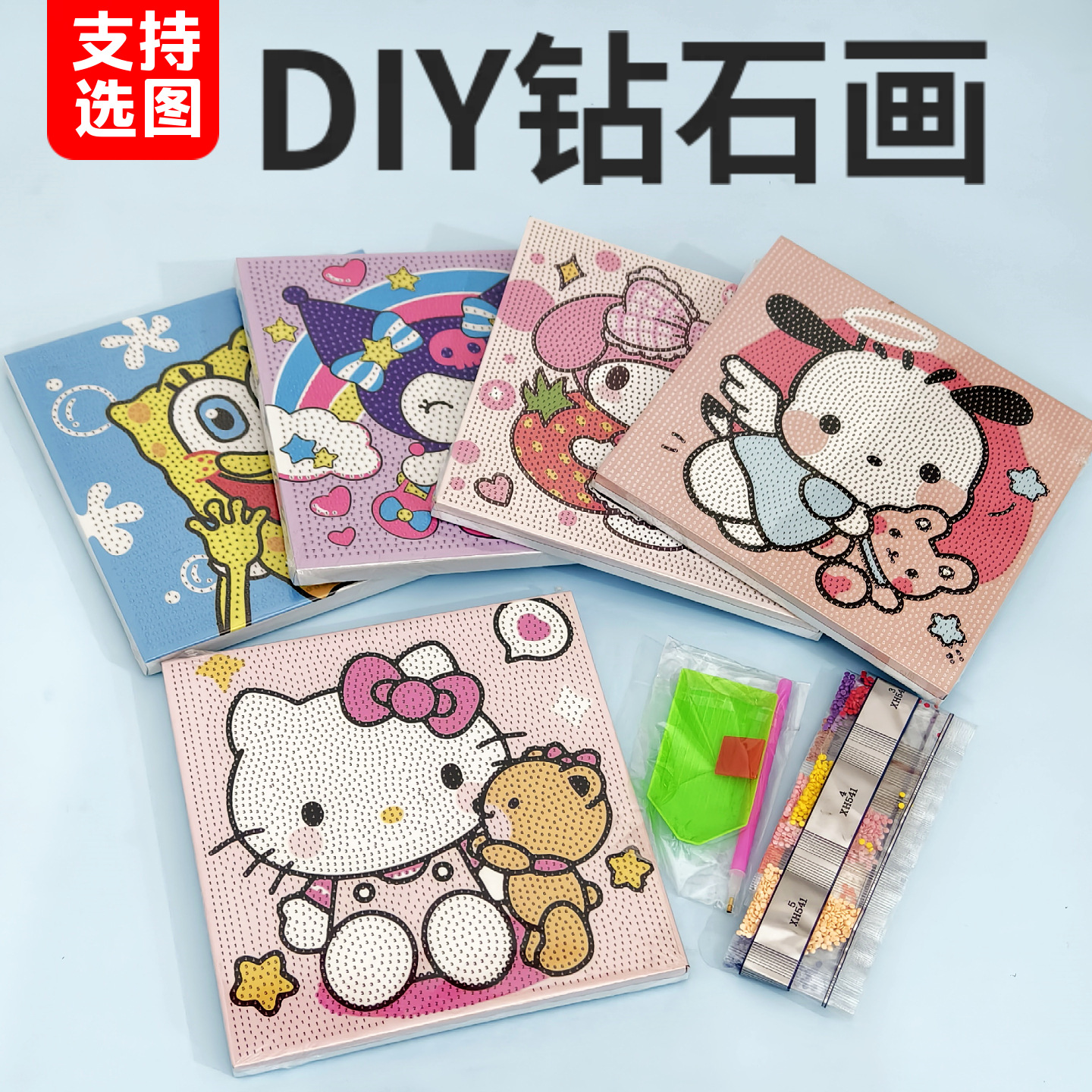 ダイヤモンドの絵の手作りのdiyは子供の材料を貼って漫画のサンリオを包みます。