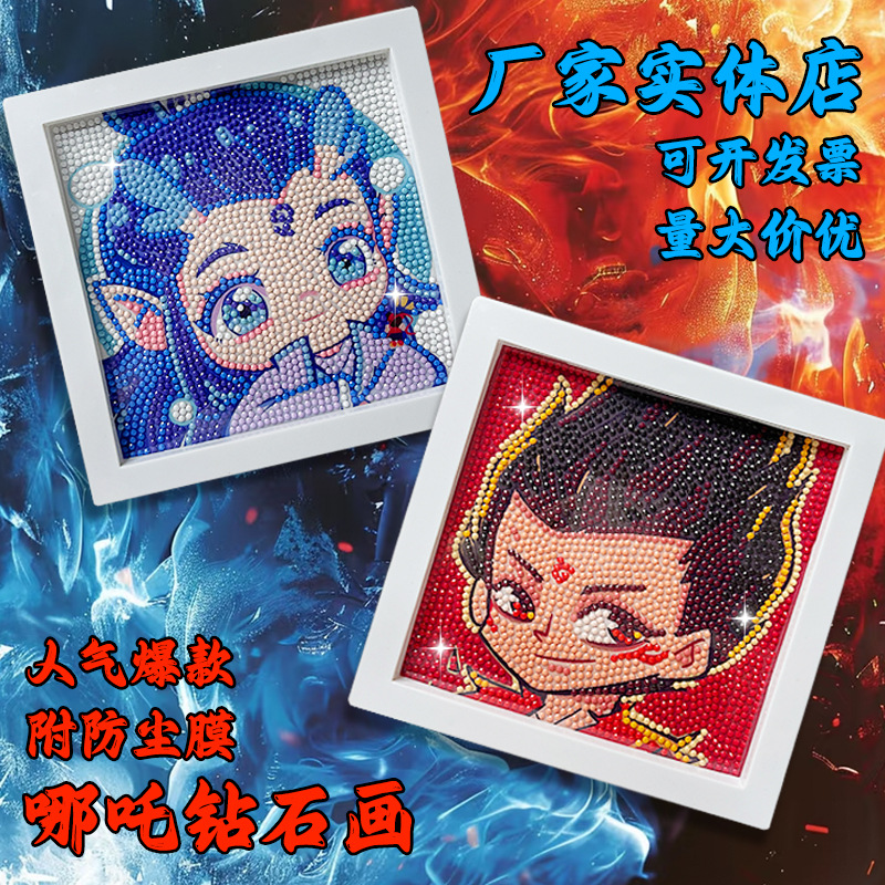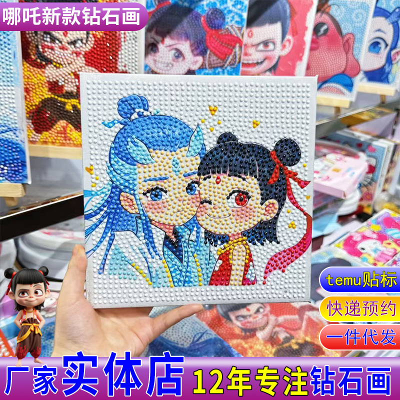 ダイヤモンド塗装卸売クロミ diy Nezha 子供のステッカー新しい漫画パズル DIY 手貼り付けおもちゃ