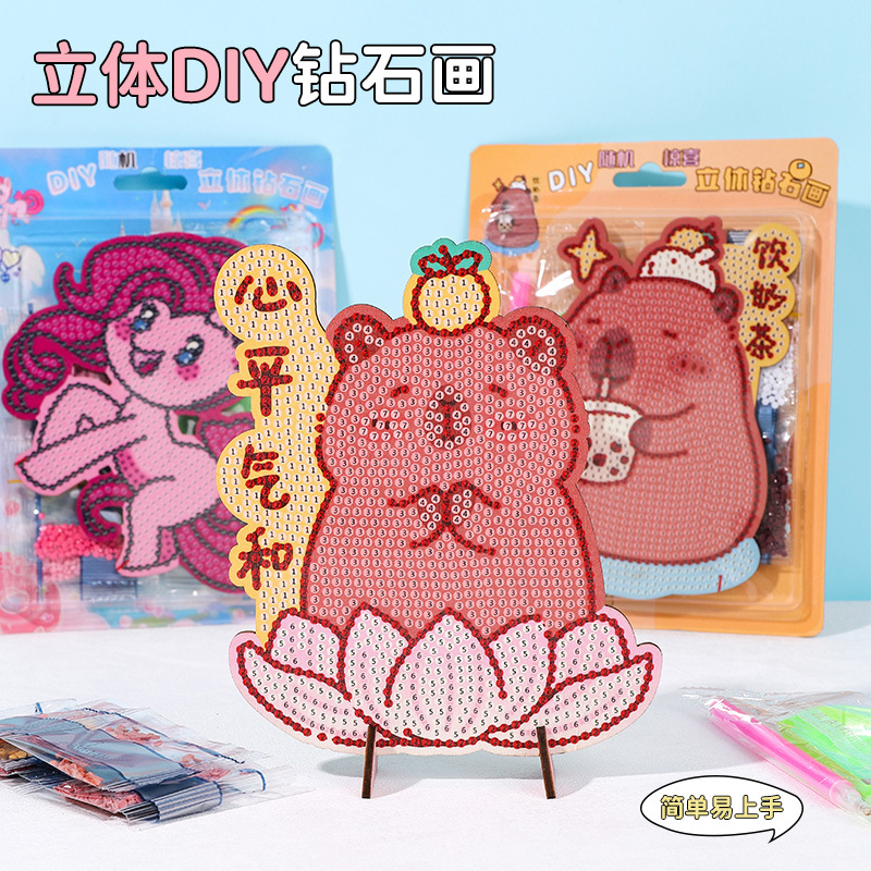 新型カピバラDIY立体手作りダイヤモンド画子供手作り益智玩具漫画点ドリル画源