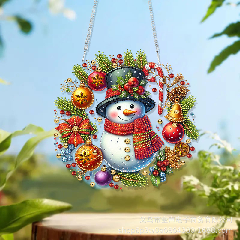 クロスボーダー手作りDIYクリエイティブクリスマス花輪雪だるまダイヤモンド画オフィス掛け飾りリビングルームストラップ家庭装飾