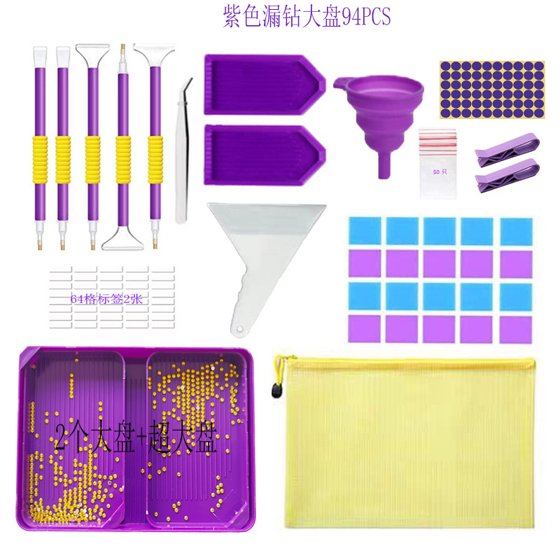 新しいdiyダイヤモンドの絵のツールはドリルの総合株価のセットの紫色の点をもぐります。