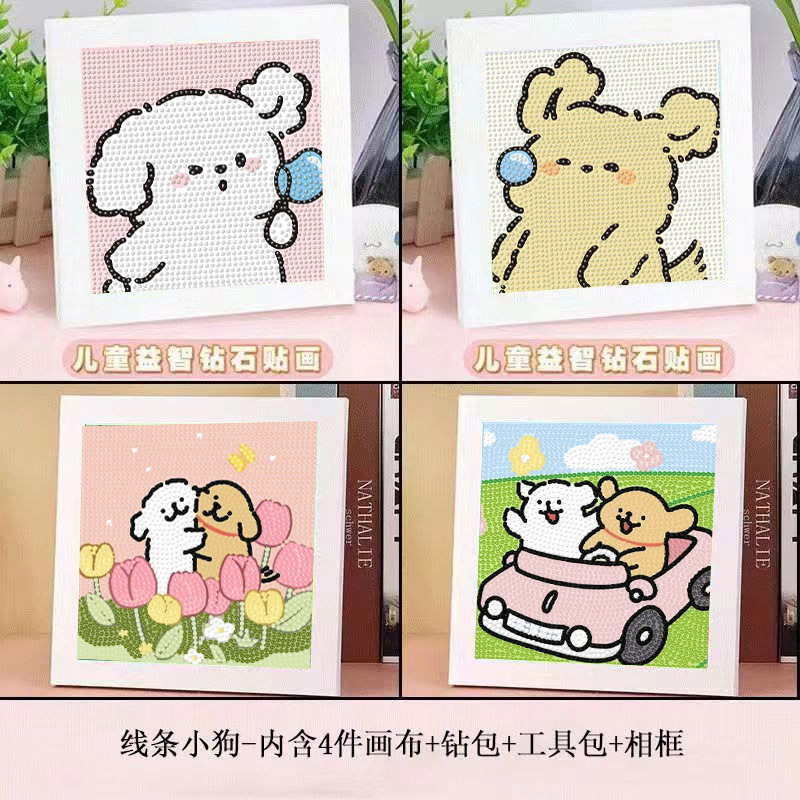 新しいラインの子犬の漫画のダイヤモンドはdiyの手作りの子供を描いて石積みのカップルの十字の刺繍をつけて彼女に送ります。