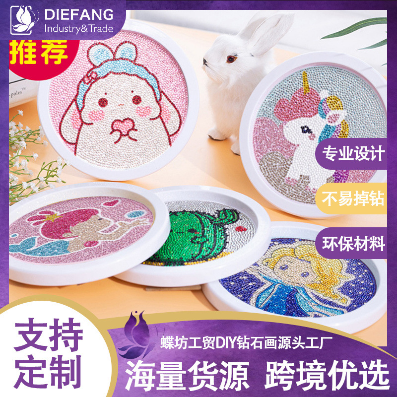 子供用ダイヤモンドペインティング、額縁付き、手作りDIY、知育玩具、丸額縁、小学生向け、かわいいギフト、装飾画