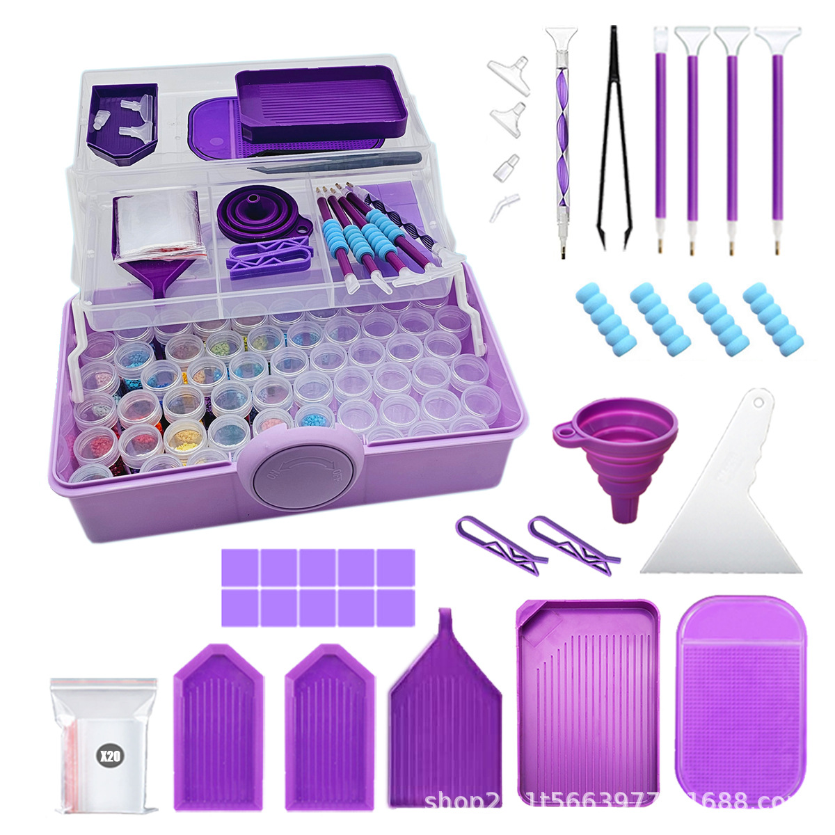 新しいダイヤモンドの絵のツールセットの紫色の漏斗はドリルの収納の箱を分けてドリルの十字の刺繍の部品の補助材料を貼ります。
