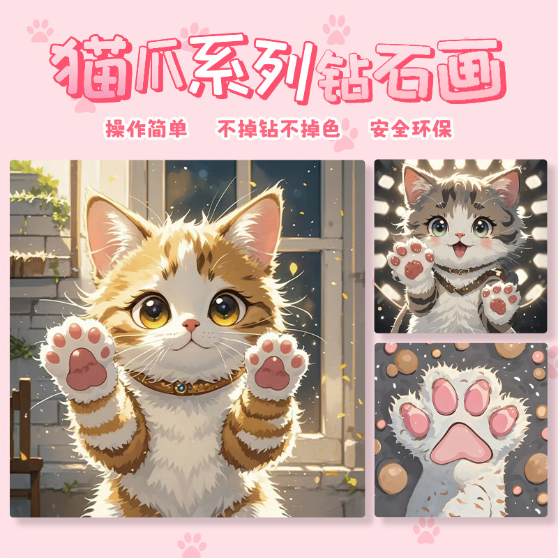 猫のダイヤモンドペインティングDIY、手作りで全面にダイヤモンドを貼る装飾画、子供の癒しと集中力育成、可愛いペットシリーズ