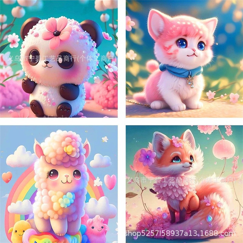 クロスボーダー成人動物ダイヤモンド画、かわいい動物ダイヤモンド画DIYダイヤモンドドット乳牛パンダ装飾画