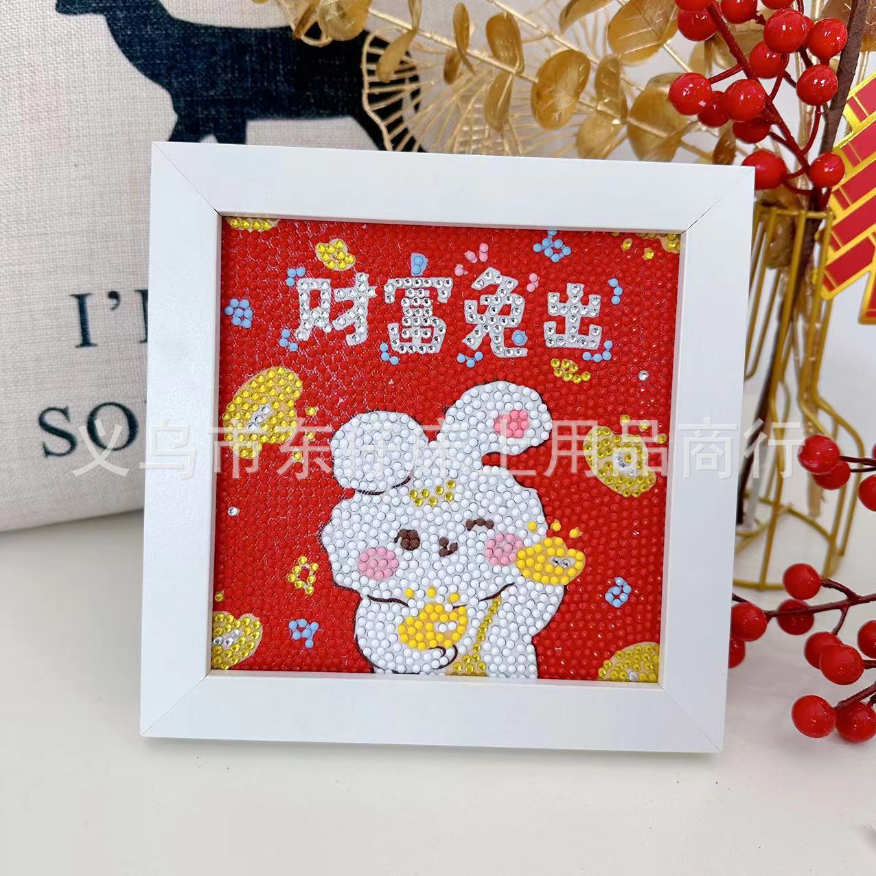 2023新年ダイヤモンド画ウサギ年新年手作りdiyダイヤモンド貼り絵新年装飾画枠付き卸売り