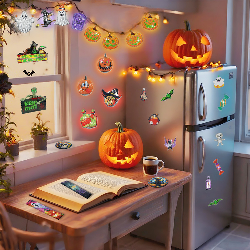 カスタマイズされたクロスボーダーダイヤモンド絵画手作り diy ハロウィンコレクション冷蔵庫マグネット発光壁ランプ吊りコースター 5d ブックマーク
