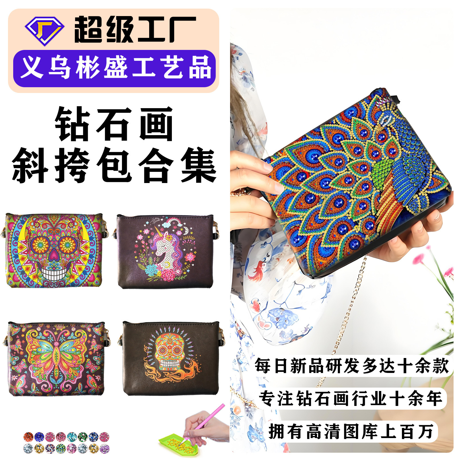 ダイヤモンド画異形ドリル新型バッグハンドバッグユニコーンdiyダイヤモンド刺繍漫画ゼロ財布5dラウンドドリル