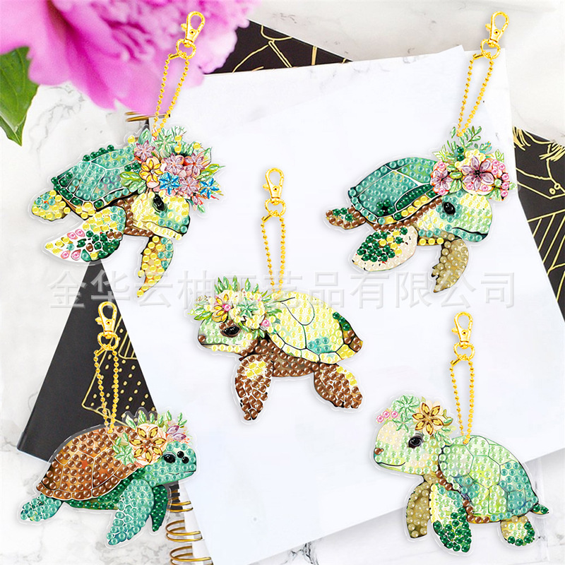 クロスボーダーtemu売れ筋ウミガメの形のダイヤモンド画のキーホルダーの創意的な水杯の財布のストラップの装飾はカスタマイズできます。