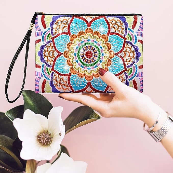 5D1ピース5D DIYダイヤモンド塗装ハンドバッグ化粧バッグ、曼荼羅スタイル手作りダイヤモンドアート工芸
