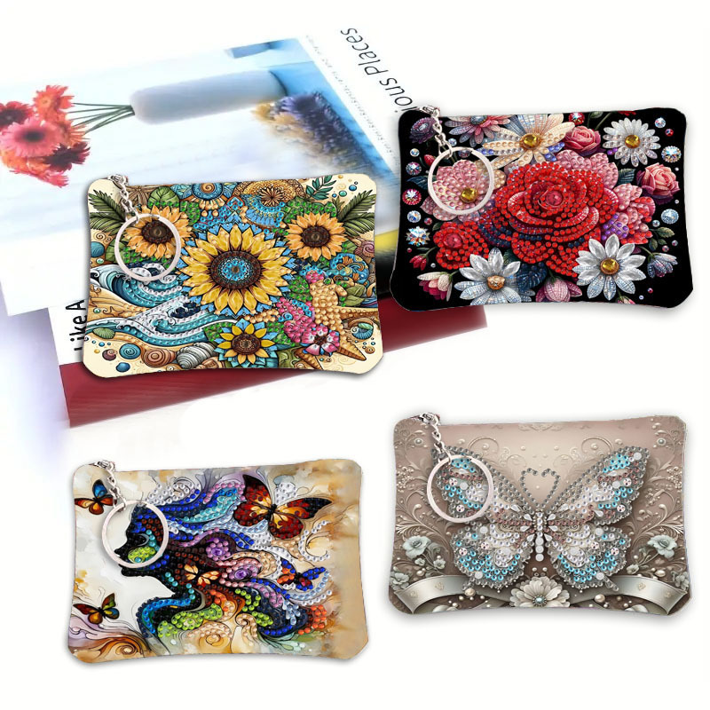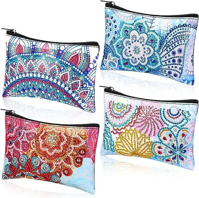 4ピース曼荼羅ダイヤモンド絵画手持ち財布レザーダイヤモンド絵画ハンドバッグダイヤモンドアートバッグジッパー付き