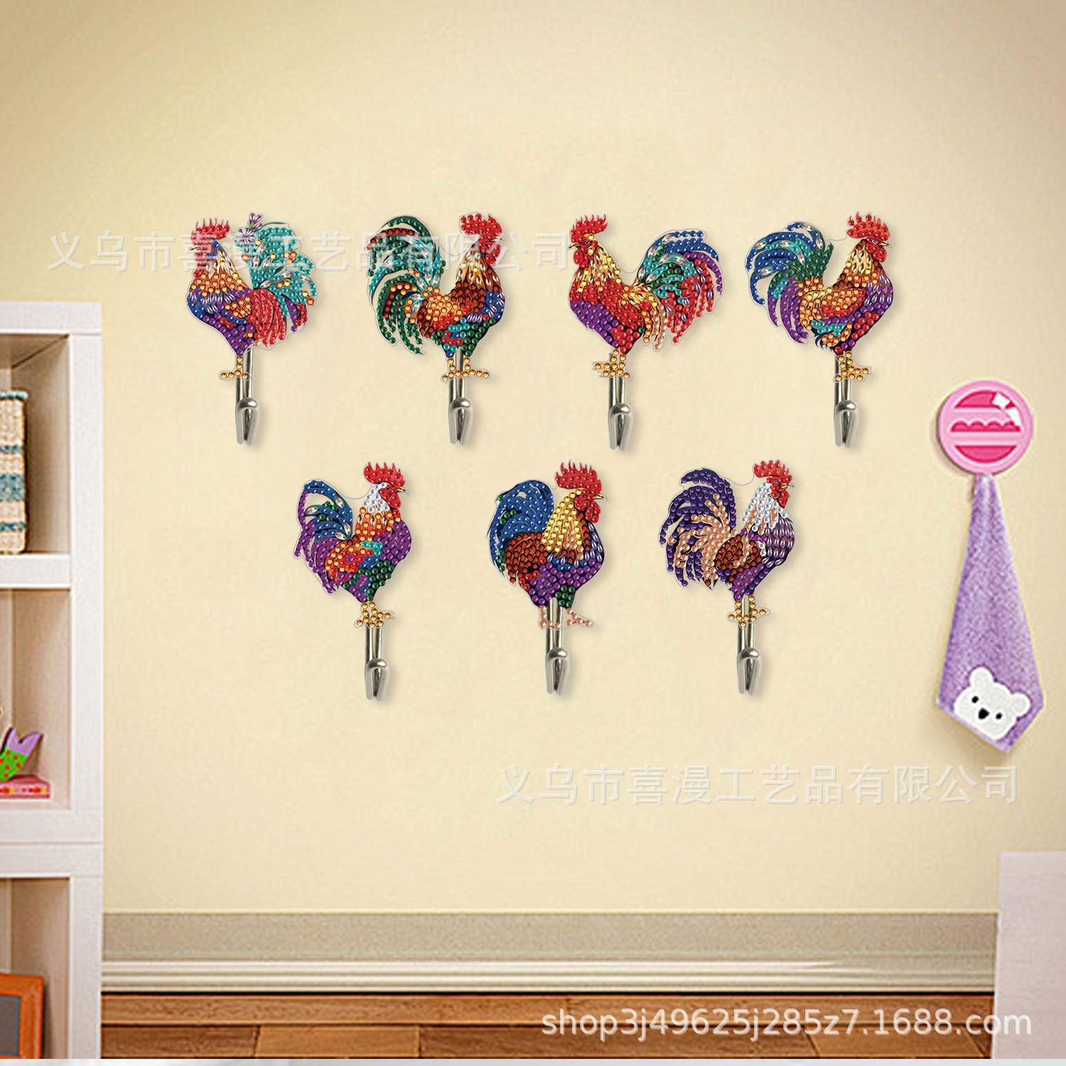 クロスボーダー直供5Dダイヤモンド画新型異形水晶ドリル雄鶏フックキーホルダー手芸愛好家プレゼント
