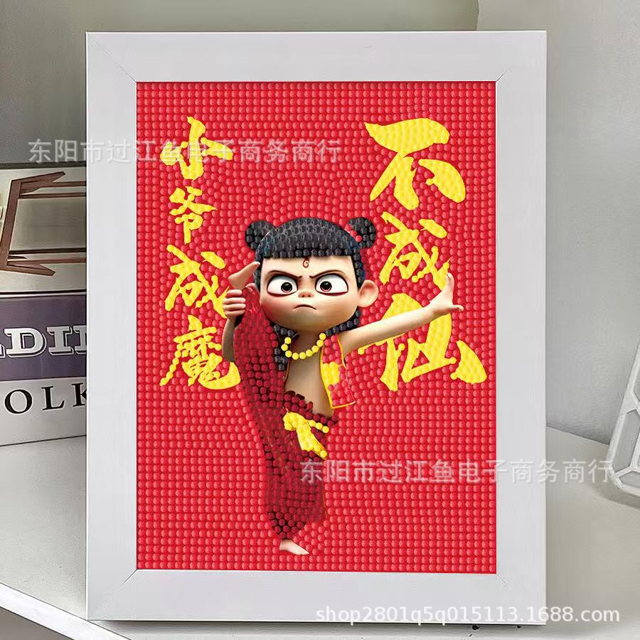 哪吒ダイヤモンドペインティング手作りDIY貼り付け絵画2025年新作額縁付き奥平漫画ギフト