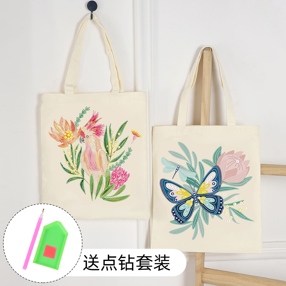 ダイヤモンド画キャンバスバッグ花蝶ダイヤモンド画手提げ袋創意diy点ドリルセットダイヤモンド画キャンバスバッグ