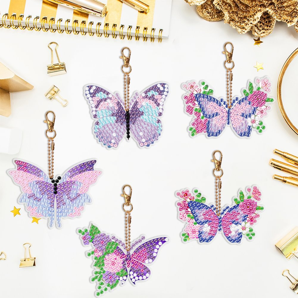 新商品diyダイヤモンド画のキーホルダー胡蝶シリーズは子供に集中してドリルのアイデアを貼って両面にドリルを貼ります。