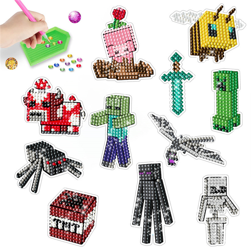クロスボーダーマインクラフトダイヤモンド絵画漫画ゲームランダムステッカー子供のための diy 手作りダイヤモンドステッカー卸売