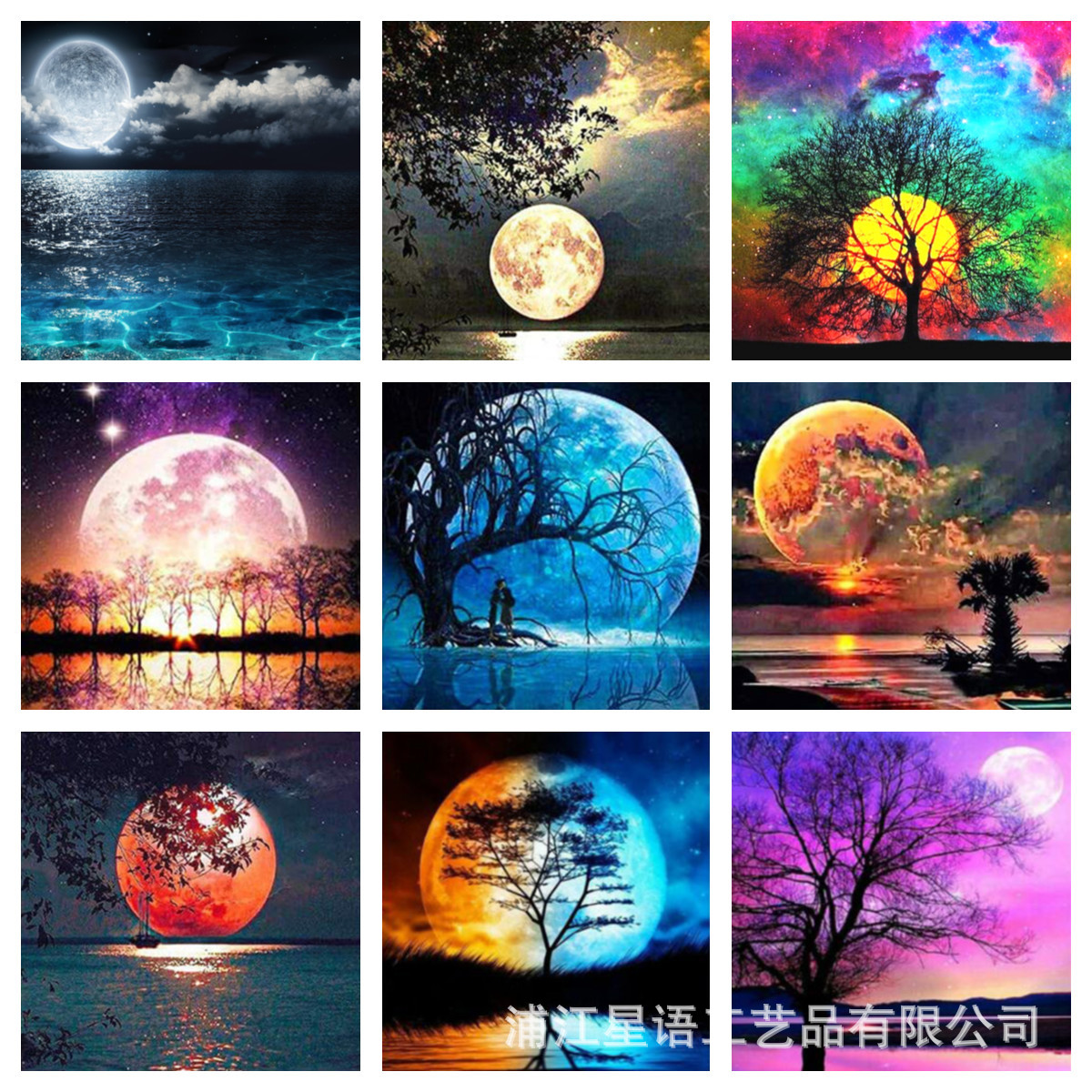 Diy新型ダイヤモンド画風景倒影月明かり樹点ドリル十字刺繍装飾画クロスボーダー専用メーカー直販