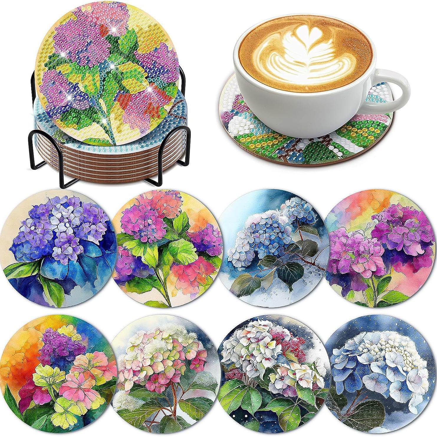 2023新型ダイヤモンド画DIY手作りのリビングルームの寝室のコースターの置物8点セット