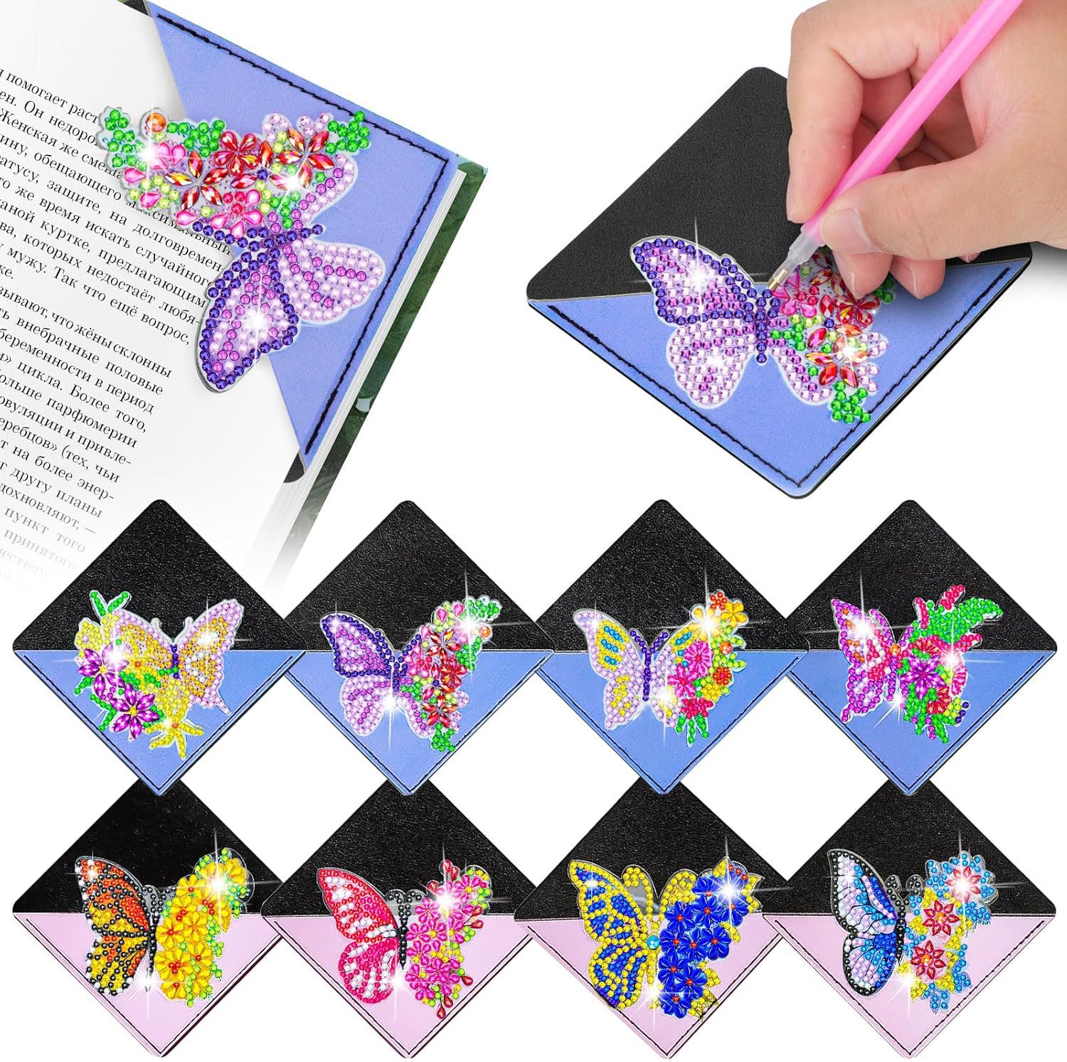 クロスボーダー熱金8件pu皮手作りドリル蝶包角ブックマークDIY自作プレゼント