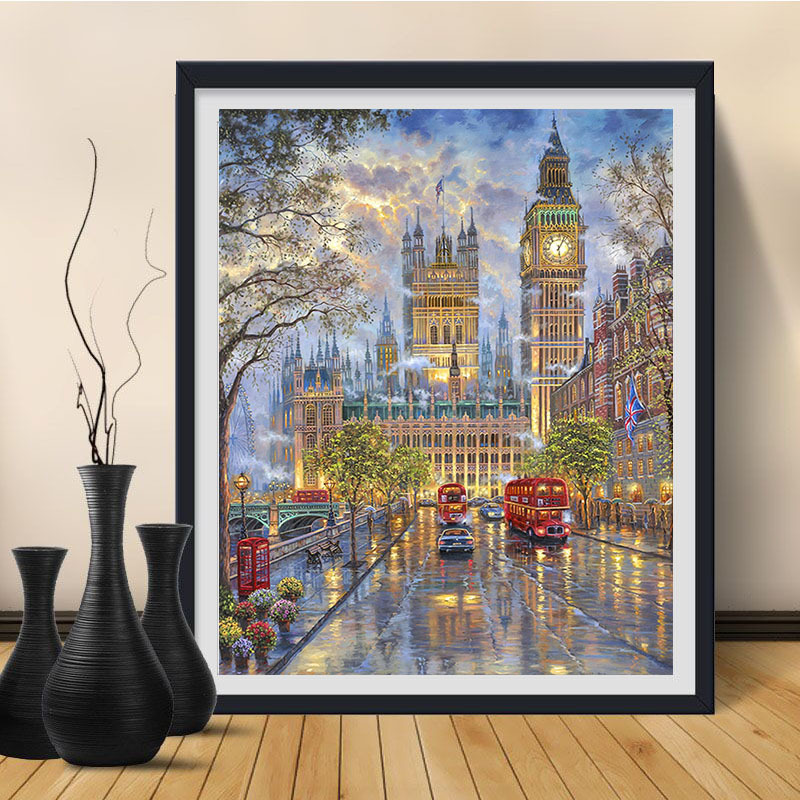 ダイヤモンド画2022新型満ドリル十字刺繍都市街路大時計小件客間風景ダイヤモンド刺繍ドリル