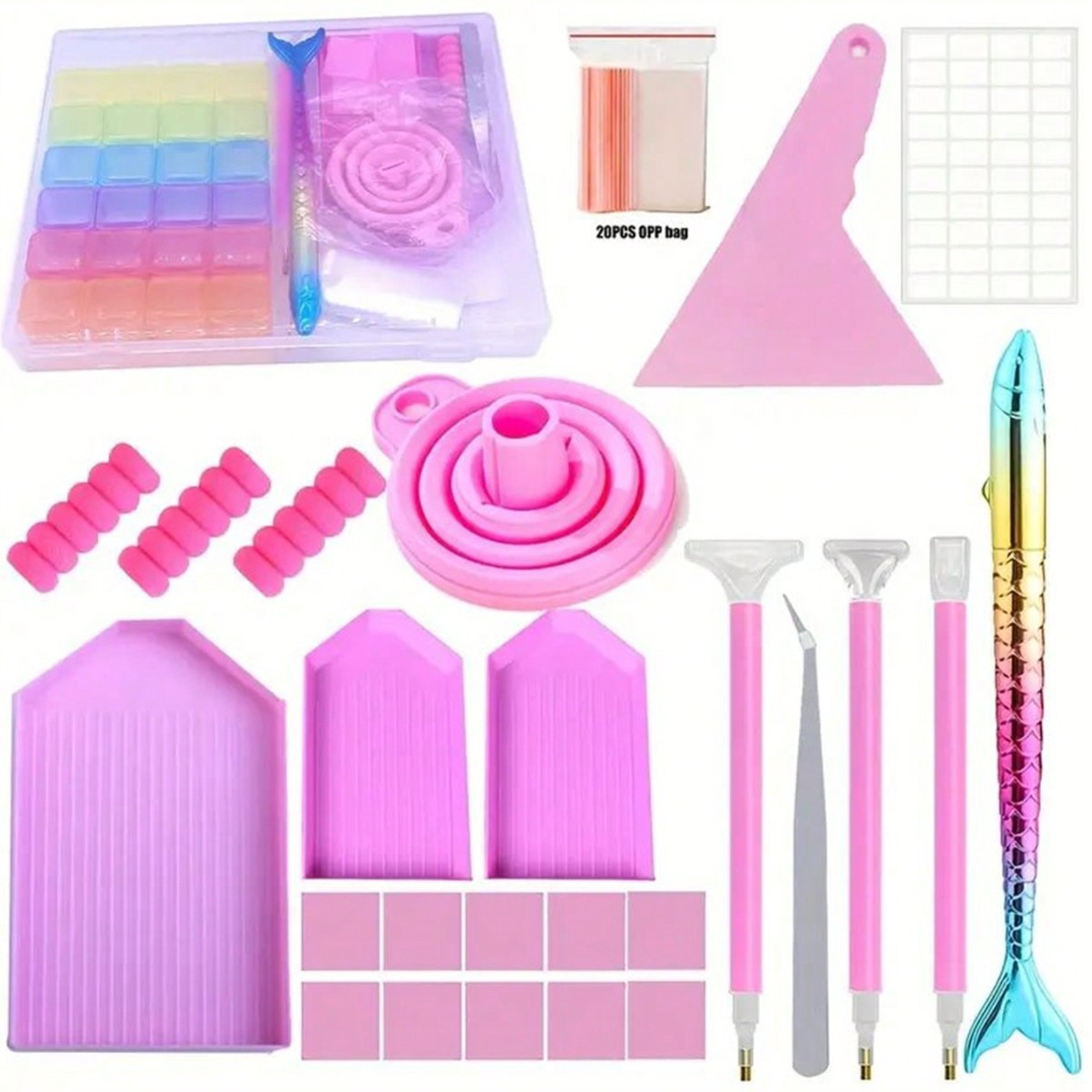 カラー28マス目スクエアダイヤモンド絵画ビーズ収納ボックスセットアクセサリーセット-ポイントドリルペンスクレーパー含む