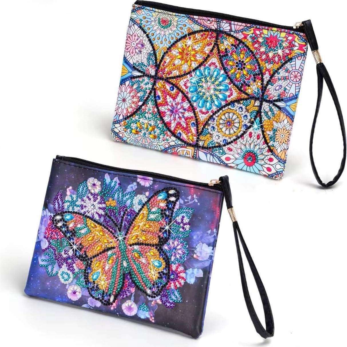 鏡を越えて人気がある5d diyダイヤモンド彩色絵バッグ化粧バッグ蝶スタイル手作りダイヤモンド芸術工芸バッグ