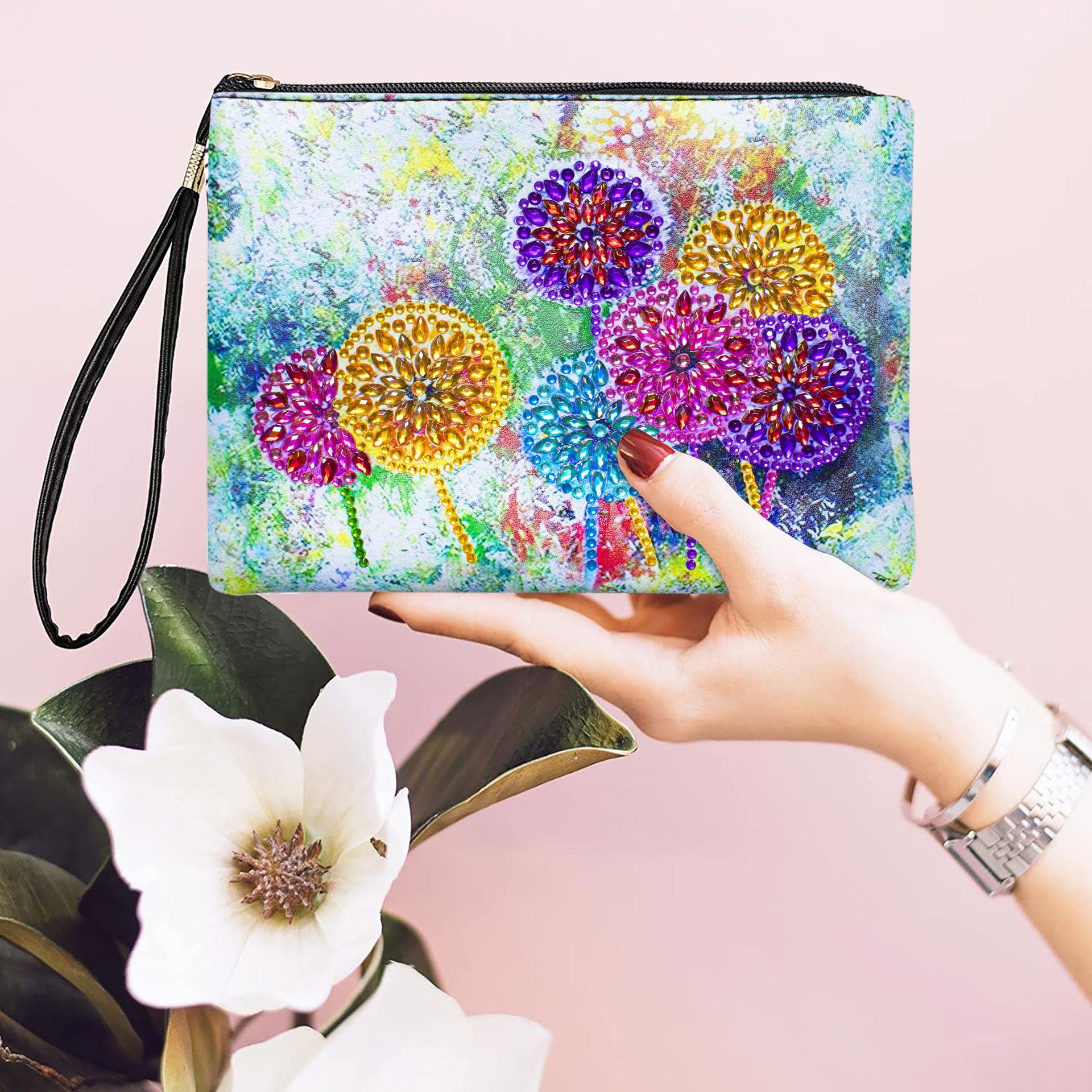 5D1ピース5D DIYダイヤモンド彩色絵ハンドバッグ化粧バッグ、タンポポスタイル手作りダイヤモンドアート工芸