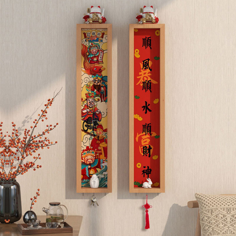 五路財神爺入戸玄関装飾画縦版長条中国風門壁面掛画無穴壁画