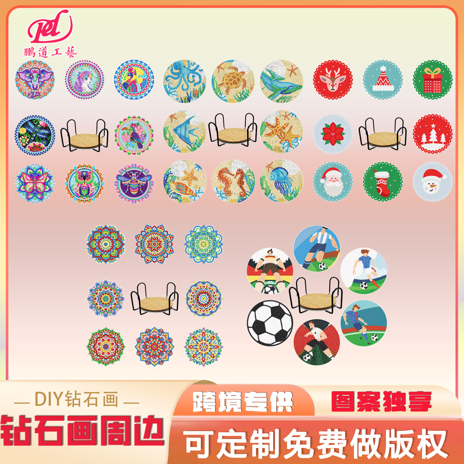 ダイヤモンド画創意クリスマスアクリルコースター鉄フレーム曼荼羅DIY手作りダイヤモンド貼り絵卸売り