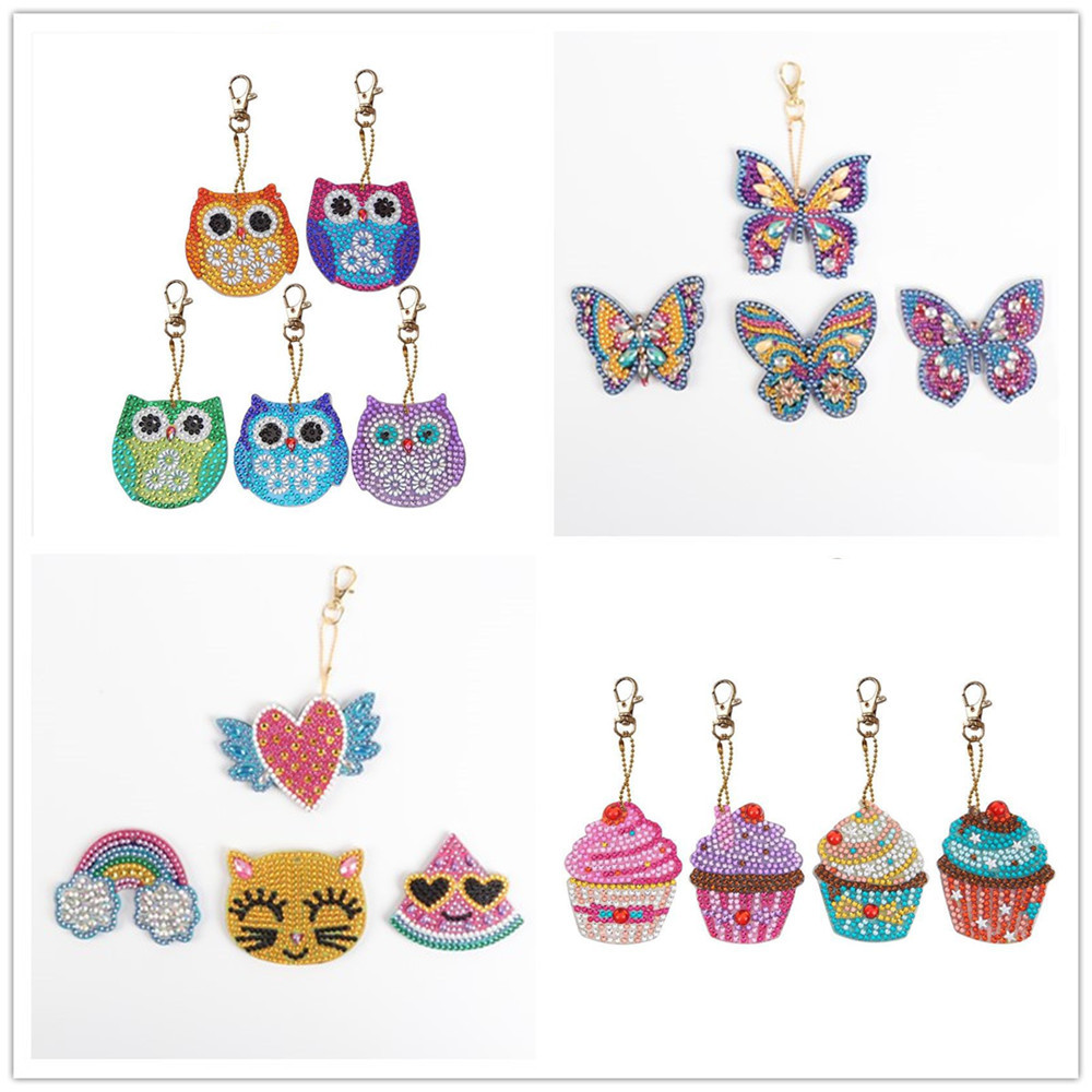 5dダイヤモンド画キーホルダー丸ドリルクリスマス異形ドリルフクロウdiyダイヤモンド刺繍蝶ストラップ