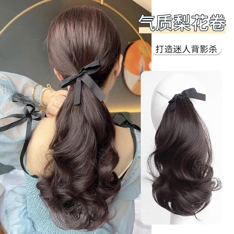 梨の花巻の短い馬尾のかつらの女性のふわふわしているバンドの馬尾の自然なシミュレーションの髪の長い髪のかつらのお下げの高い馬尾