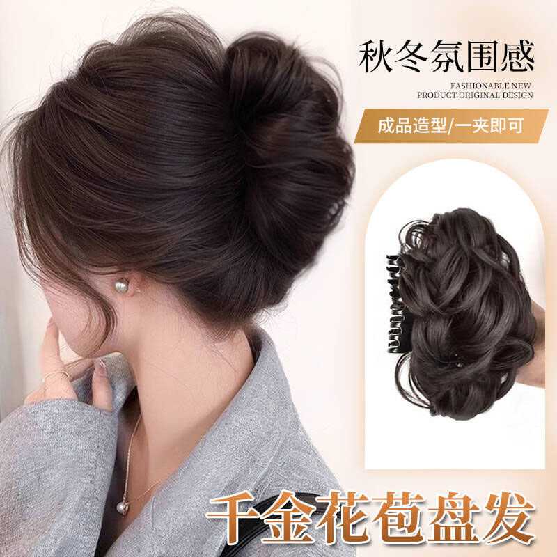 女性用ツイストミートボールヘアウィッグ、模擬ヘアつぼみヘアアーティファクト、後頭部用ふわふわクリップ、高級ウィッグバッグ