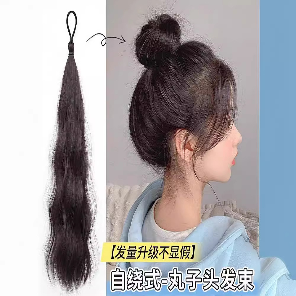 新しいかつらの馬尾は髪を巻いて団子の頭のかつらの女性の中の長いかつらの尾を巻いて縛ります。
