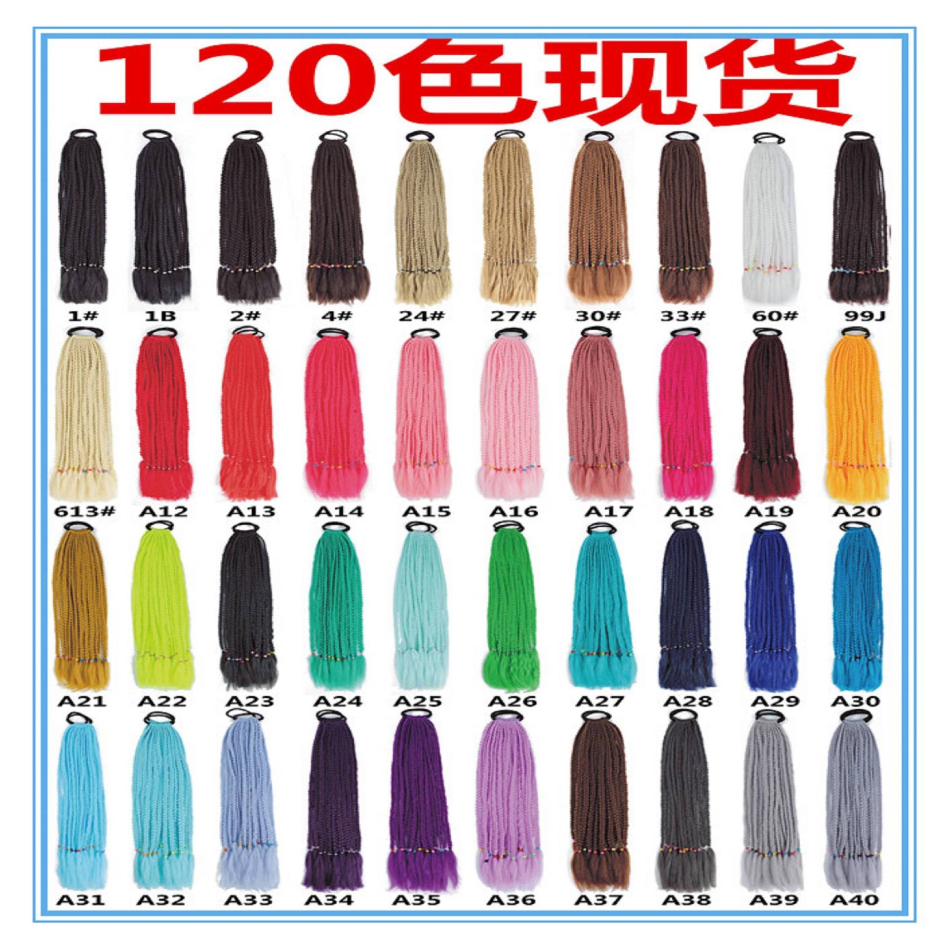 単一パックの化学繊維ウィッグカラーポニーテールゴムバンドボクシング三つ編みは、カラフルな三つ編みポニーテールヘアエクステンションで編むことができます