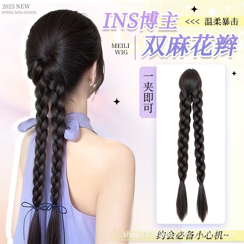 かつらのお下げの子供INSの低いポニーテールは自然に完成品の麻の花の長いお下げのかつらのお下げのポニーテールをシミュレートします。