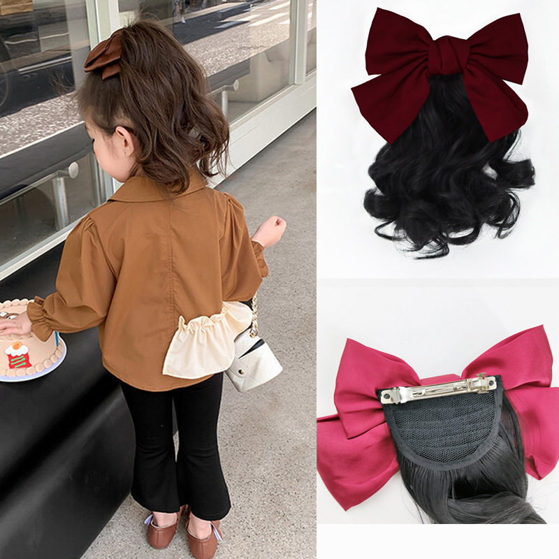 メーカーは韓国版の子供のかつらを卸売りしてポニーテールの側の双お下げの長い巻き髪の王女の蝶結びの髪を巻いて大量の現物を挟みます。