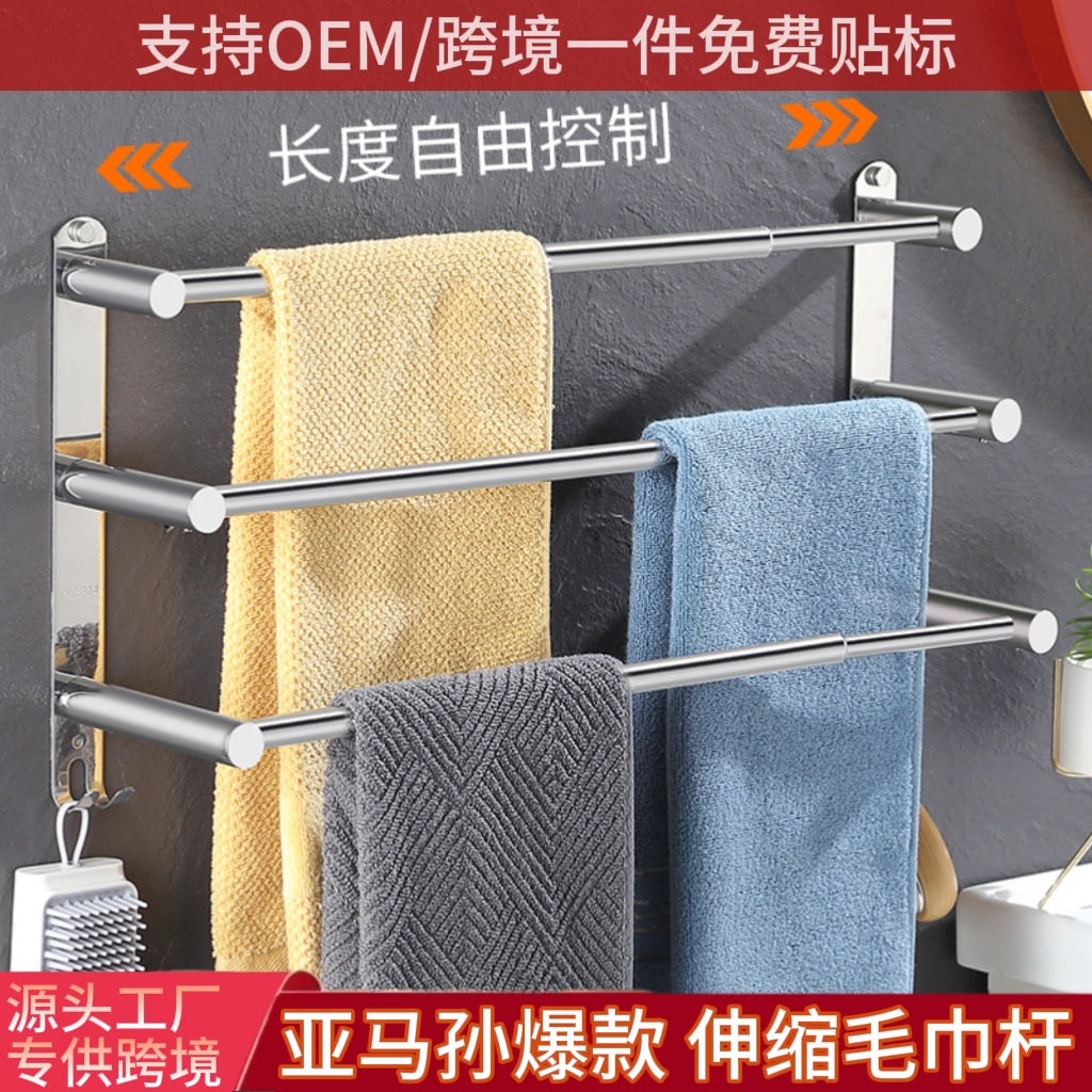 伸縮タオルバー穴なし調節可能タオル掛けバートイレタオル棚コーナーフレームクロスボーダー専用