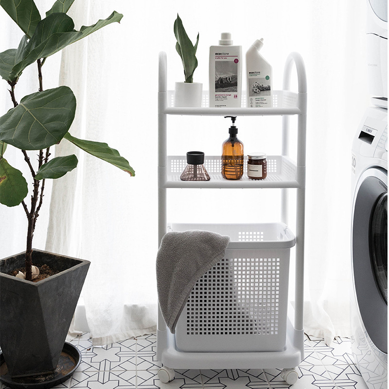 国境を越えて人気のある浴室の棚の洗濯かごの三層の棚