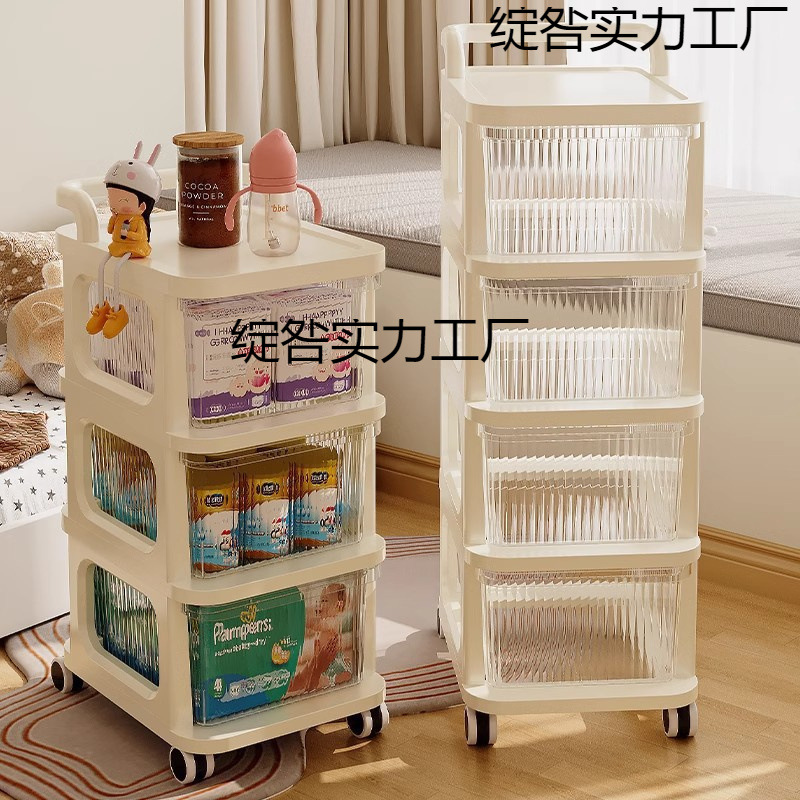 ベビー収納ラックベビーカー引き出し型多層収納ラッククリームスタイルスナック収納ラックおもちゃ収納キャビネット