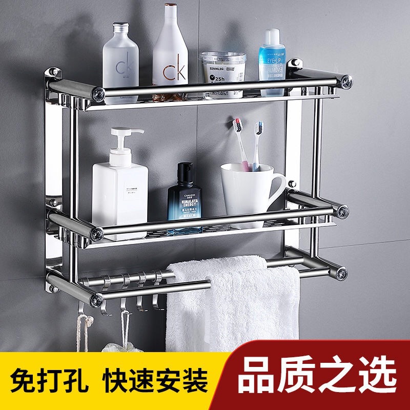 ステンレストイレの物置棚トイレの厚いタオル棚浴室の二重バスタオル棚の壁掛け風呂は穴を開けないでください。