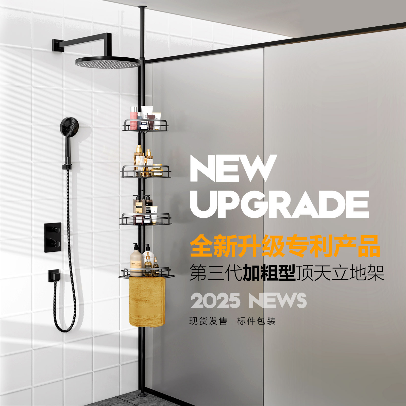 天井に立つステンレス浴室の棚は穴を開けないで伸縮できる三脚が床に落ちるトイレの雑物棚です。